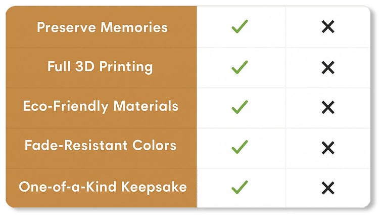 Celebrate the life of a loved one through a unique and personal keepsake, capturing their essence in 3D form.